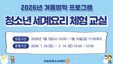 2025년 겨울방학 프로그램<청소년 세계요리 체험 교실>